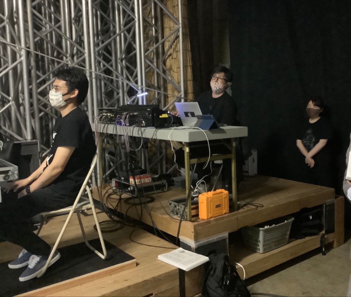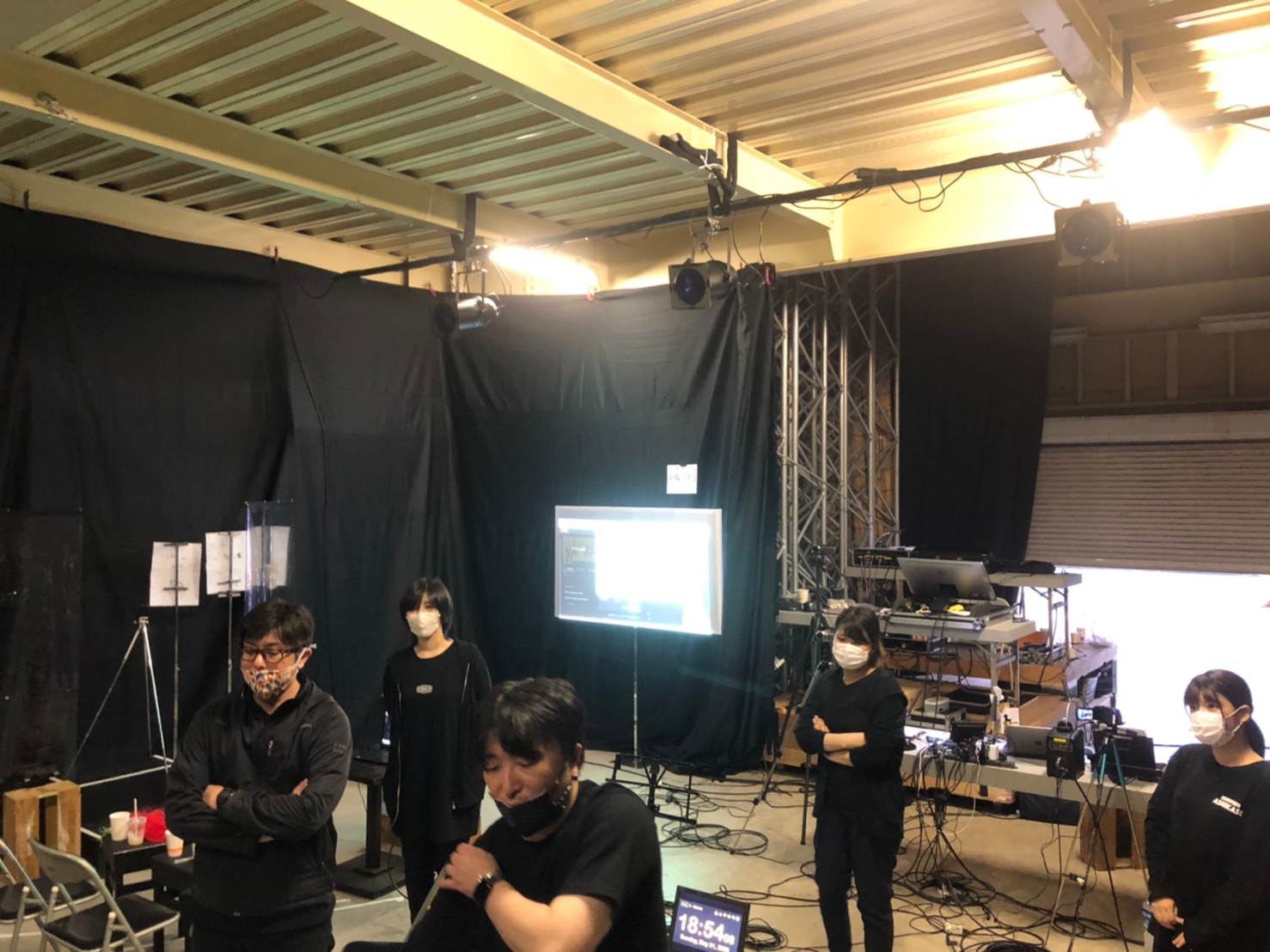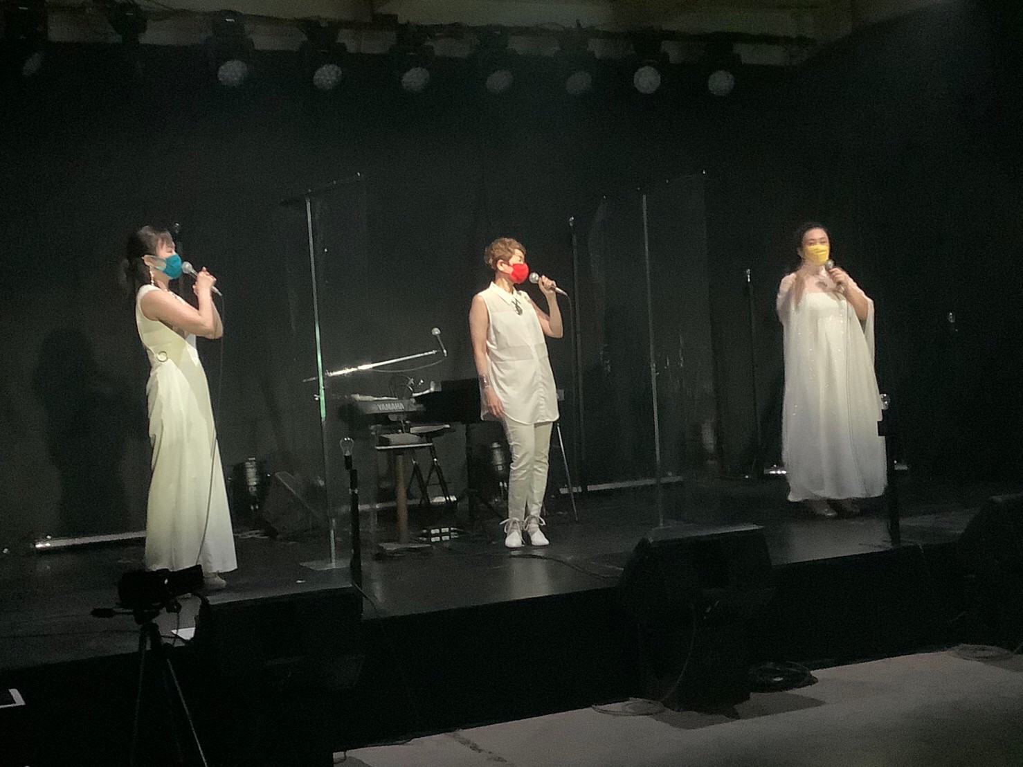 会場はなんと金沢舞台さんの倉庫(!)もちろん換気や消毒、マスクの着用、ソーシャルディスタンスなどを徹底し、ステージ上もビニールシートで区切り私たちの飛沫を防いでいました。でもご覧になった方はわかると思いますがそこはまるで本当のライブハウスのようでした!舞台音響照明!もちろんプロの仕事ですから!!