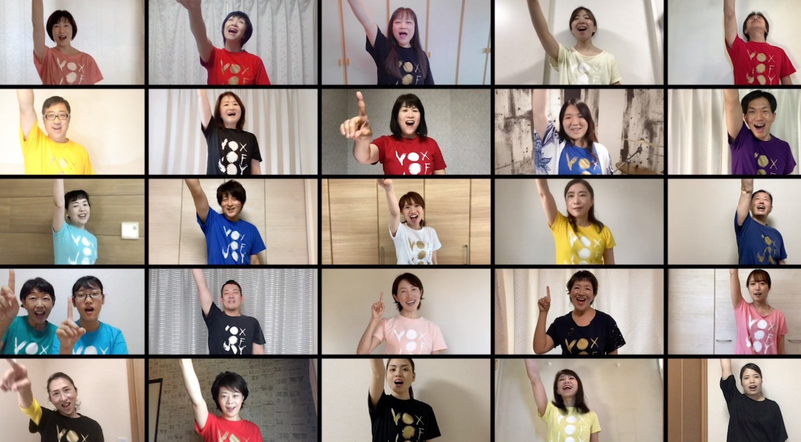 今回の配信にはいくつかの目玉がありまして、その一つが東京にいるマネージャーのリモート出演(コスプレ付き)遠くにいても出演出来るオンラインならでは!そしてもう一つがVOX OF JOY Choirのリモートコーラス動画とのコラボ出演!!その場にはいないメンバーとつながって一緒に歌える喜びと感動がありました。